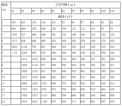 3.4 最大磁場(chǎng):H≥2T, 工作氣隙10mm時(shí),